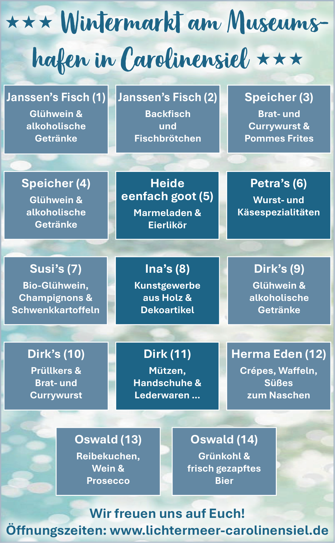 ClinerWind e.V. ist Ansprechpartner für Veranstaltungen wie den Wochenmarkt, das Straßenfest, den Wintermarkt und das Lichtermeer in Carolinensiel.