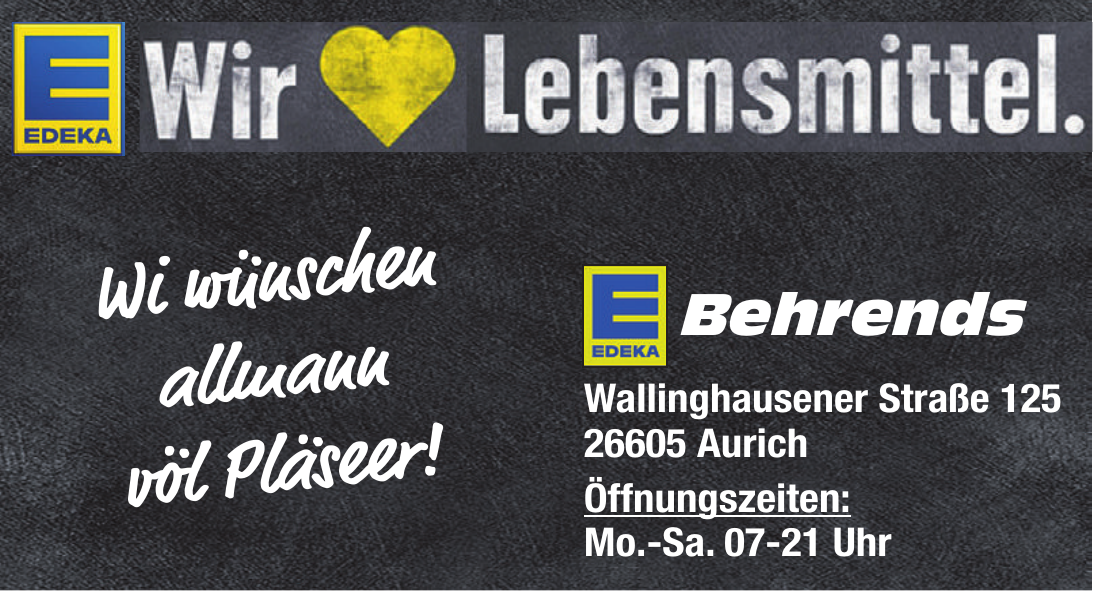 EDEKA Behrends ist als regionaler Nahversorger in Aurich etabliert und überzeugt mit einem vielfältigen Sortiment, das besonderen Wert auf Frische und Qualität legt. Der Supermarkt befindet sich in zentraler Lage nahe beliebter Anlaufpunkte der Stadt und richtet sein Angebot gezielt an die Bewohner der Region. Neben preisbewussten Eigenmarken wie GUT&GÜNSTIG mit über 1.400 Artikeln für den täglichen Bedarf, finden Kundinnen und Kunden auch die exklusive Linie EDEKA Herzstücke. Das Sortiment wird durch regionale Spezialitäten und wechselnde Aktionswaren ergänzt, die direkt vor Ort verfügbar sind.