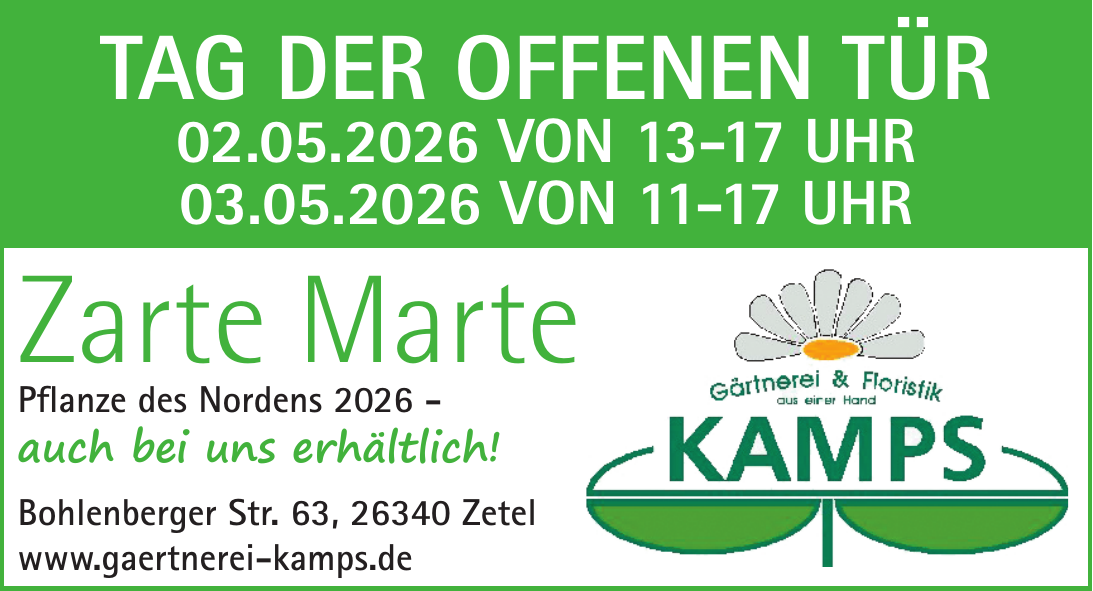 Die Gärtnerei Kamps ist in Zetel ansässig und bietet ihre Produkte und Dienstleistungen lokal an.