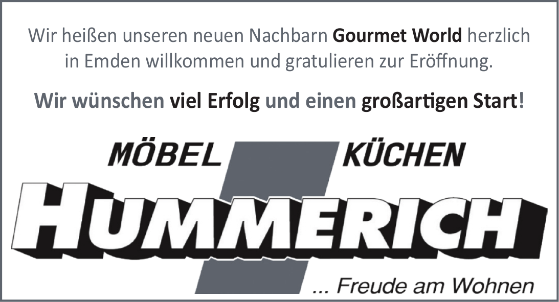 Das Möbelhaus Hummerich in Emden blickt auf eine mehr als 130-jährige Geschichte zurück und wird heute bereits in fünfter Generation als Familienunternehmen geführt. Auf einer großzügigen Ausstellungsfläche von rund 12.000 Quadratmetern präsentiert das Einrichtungshaus ein vielseitiges Sortiment an Möbeln und Wohnaccessoires für sämtliche Wohnbereiche – von Wohnzimmer und Schlafzimmer über Küchen bis hin zu Arbeitszimmern und Garderoben. Die Auswahl reicht von modernen bis hin zu klassischen Stilrichtungen und wird durch eine breite Palette sorgfältig ausgewählter Marken wie Interliving, Roomio, Kawoo, Globo, Severin, Rovio, Zwiesel, Rotho, Trio und Reviera Maison ergänzt.