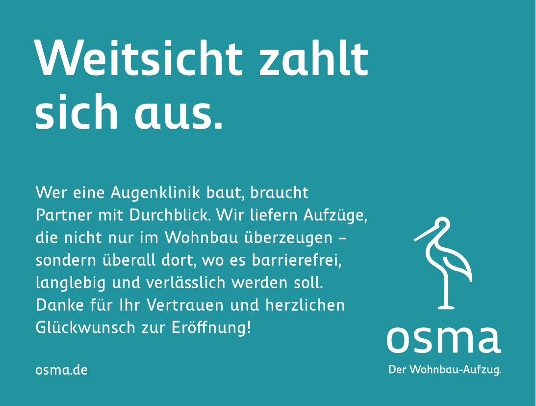Der osma 1 ist der erste Wohnbau-Aufzug der Welt und wird als ultraleise, 100 % barrierefrei (DIN EN 81-70 in der Basisversion), wohnlich, nachhaltig, schnell planbar und raumeffizient beschrieben.