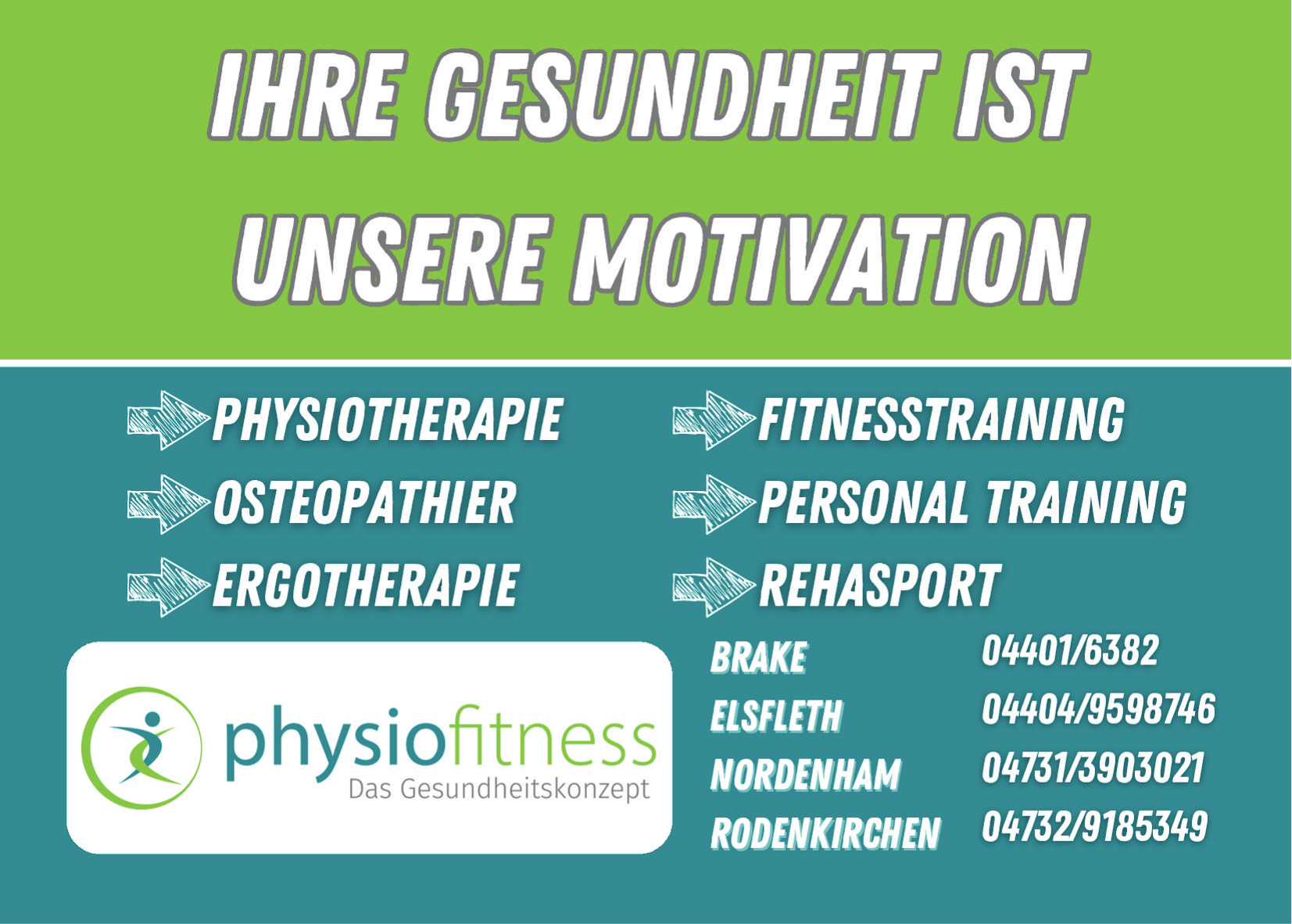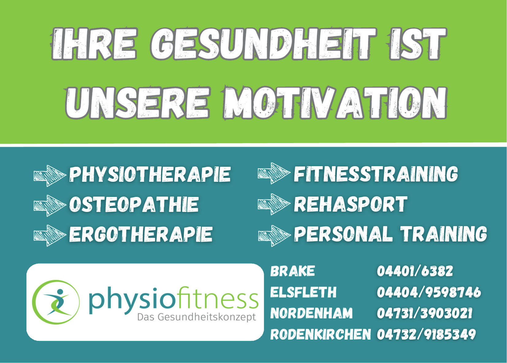 Die Standorte von physiofitness das Gesundheitskonzept befinden sich in Elsfleth, Brake, Nordenham und Stadland-Rodenkirchen, jeweils mit spezialisierten Angeboten und fachlicher Betreuung.