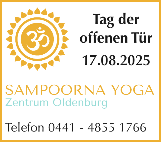Das Sampoorna Yoga Zentrum in Oldenburg befindet sich in der Zeughausstraße 70, 26121 Oldenburg (Oldb.), nur 5 Minuten von der Innenstadt entfernt.