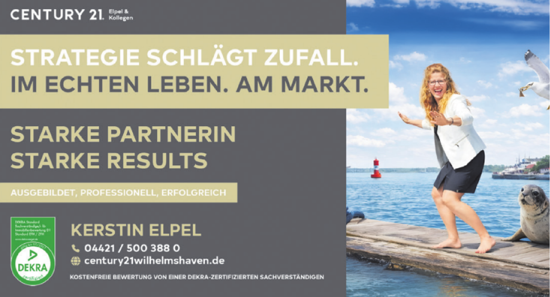 Century 21 Elpel & Kollegen präsentiert sich als lokal verwurzeltes Maklerbüro, das moderne Vermarktungsinstrumente und ein leistungsstarkes Netzwerk nutzt, um Eigentümern und Interessenten in Wilhelmshaven und der umliegenden Region maßgeschneiderte Lösungen zu bieten.