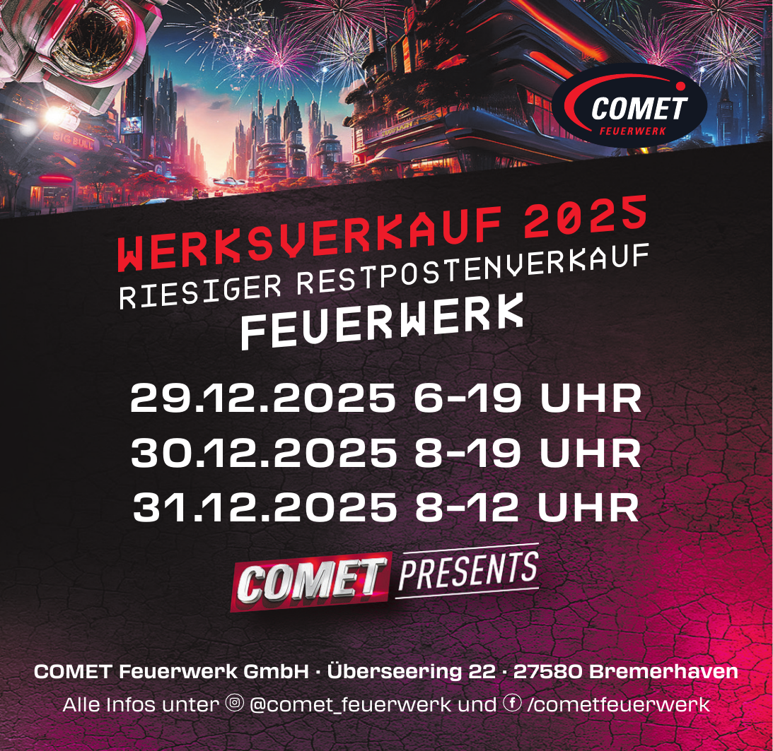 Der Standort befindet sich in Bremerhaven. COMET Feuerwerk GmbH bündelt Kompetenzen in Entwicklung, Technik, Qualitätsmanagement, Distribution und Lager sowie Vertrieb und Marketing.