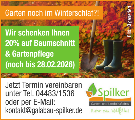 Garten- u. Landschaftsbau Spilker bietet Gartenplanung, Gartengestaltung, Garten- und Baumpflege, besondere Pflanzkonzepte, Pools und Schwimmteiche sowie Pflasterungen und Holzarbeiten in Oldenburg und Umgebung an.