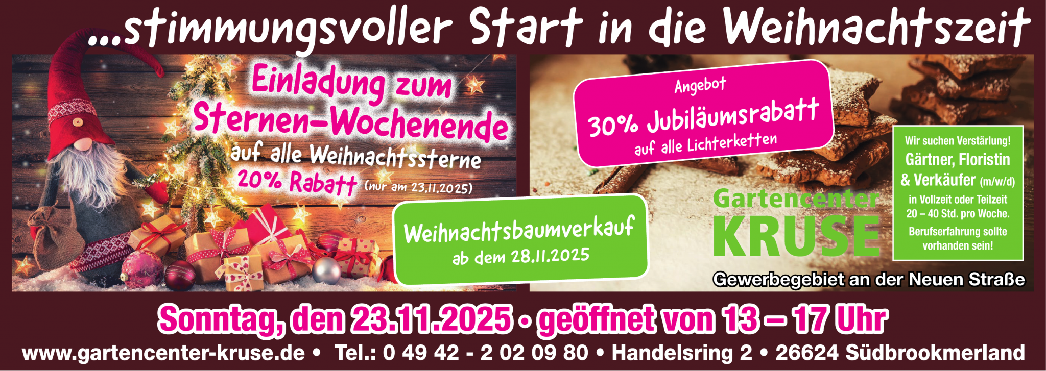 Sie können das Gartencenter Kruse telefonisch unter 04942 2020980 oder per E-Mail an info@gartencenter-kruse.de erreichen.