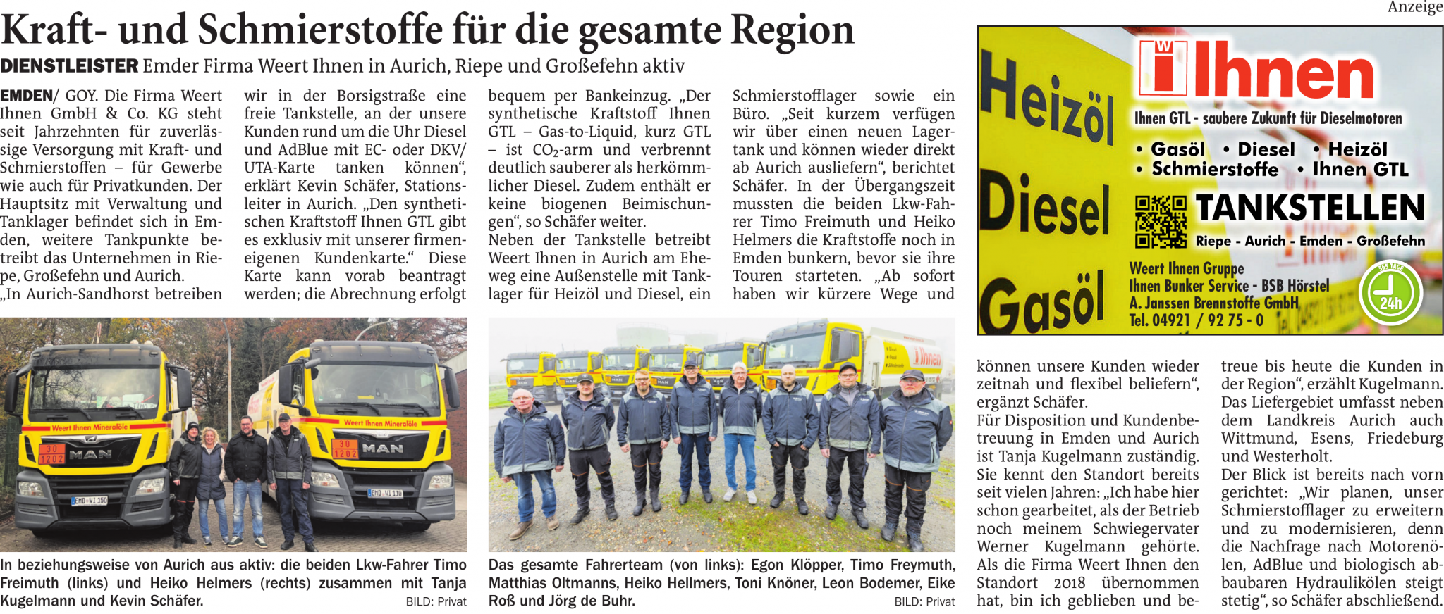 Weert Ihnen bietet Heizöl, Gasöl, Diesel, Ihnen GTL, AdBlue sowie Schmierstoffe an, um die Bedürfnisse gewerblicher und privater Kunden zu erfüllen.