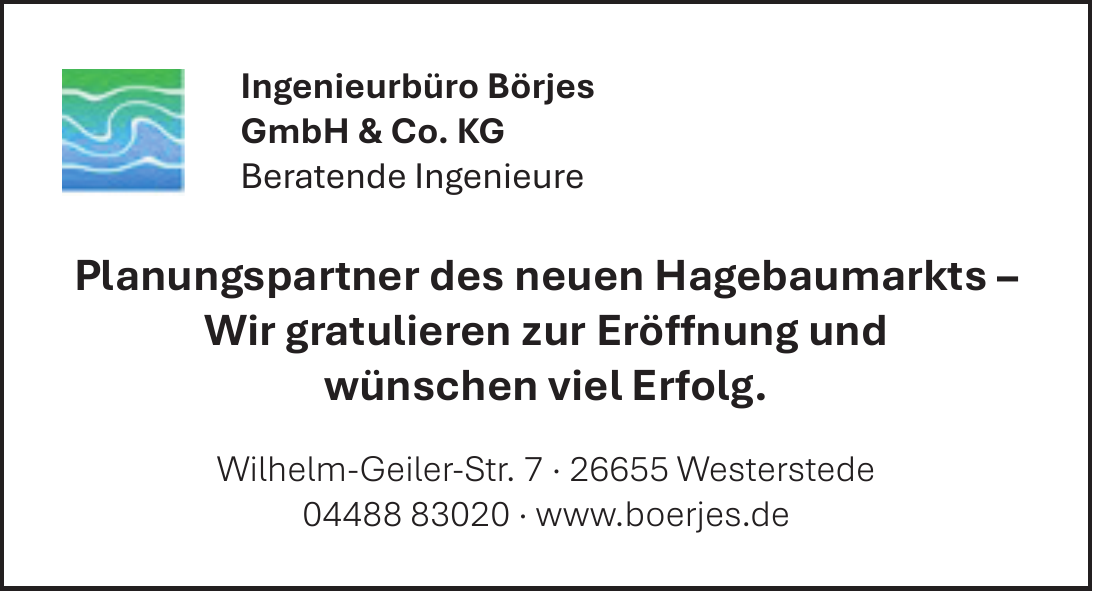 Der Firmensitz des Ingenieurbüro Börjes GmbH & Co. KG ist in Westerstede; ein zweites Büro wurde 1989 in Oranienburg eröffnet und betreut dort Kunden in Brandenburg.