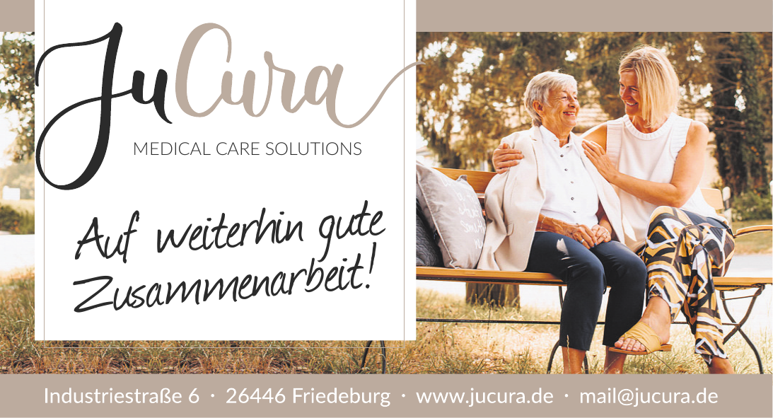 JuCura GmbH versorgt pflegebedürftige Menschen und ihre Angehörigen mit hochwertigen Pflegehilfsmitteln, schnelle Lieferung direkt nach Hause, zuverlässigen Service sowie einfache Online-Bestellung.