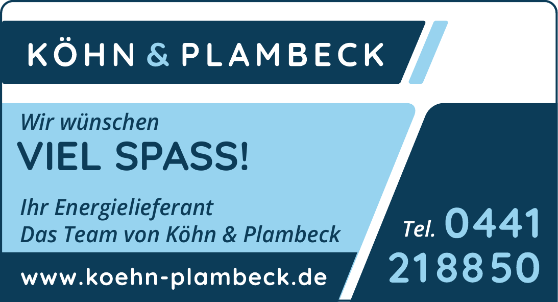 Energieversorger Köhn & Plambeck ist seit mehr als 65 Jahren ein wichtiger Teil der Wirtschaft im Nordwesten. Das Unternehmen bietet ein breites Leistungsspektrum rund um Kraftstoffe, Heizöl, Schmierstoffe und Tanktechnik für private Haushalte, Gewerbe, Industrie, Landwirtschaft sowie die Schifffahrt. Mit einem weitreichenden Netz an Tankstellen, Tankautomaten und modernen Tankfahrzeugen gewährleistet Köhn & Plambeck eine zuverlässige Versorgung im gesamten Weser-Ems-Raum und darüber hinaus.