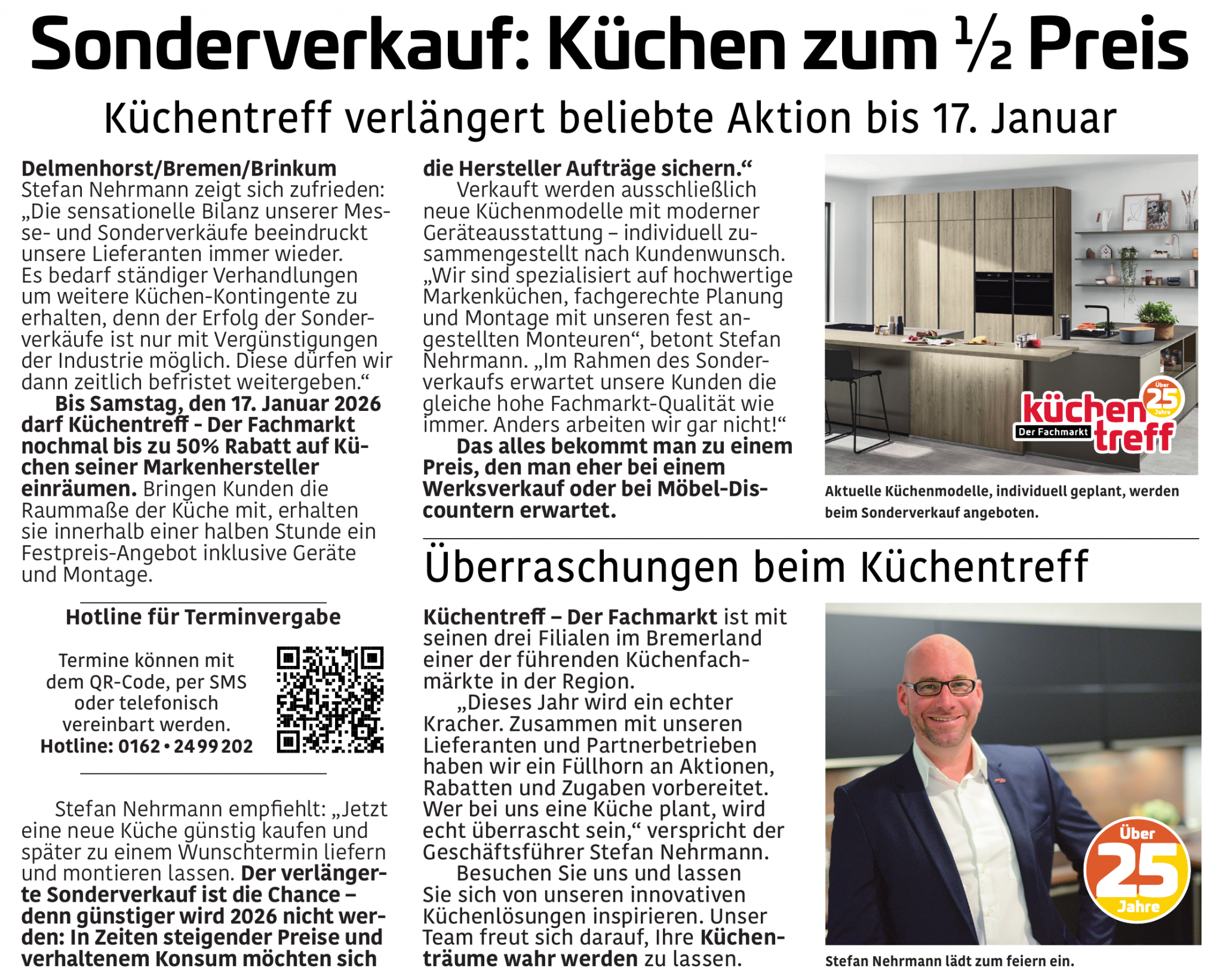 Kunden können eine persönliche Beratung in den Fachmärkten in Stuhr-Brinkum, Delmenhorst oder Bremen am Weserpark in Anspruch nehmen. Es besteht auch die Möglichkeit, eine Heimberatung bei ihnen zuhause zu vereinbaren. Die Fachberater unterstützen bei der Auswahl der passenden Küche, Gestaltung und Zubehör, um individuelle Wohnsituationen optimal zu realisieren.