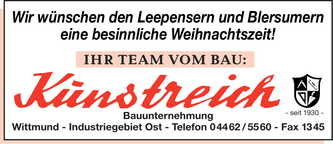 Der Firmensitz von Kunstreich Bauunternehmung befindet sich in der Aseler Straße 2, 26409 Wittmund.