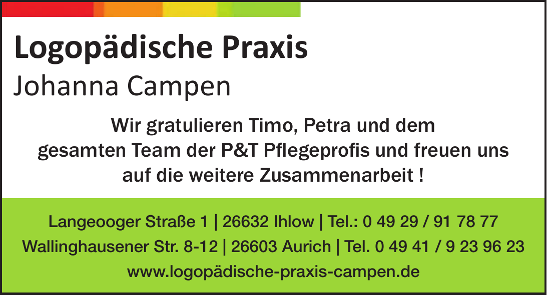 Logopädie Campen ist die erste Adresse für logopädische Fragen und Anliegen in Ihlow, Aurich und dem Umland. Ziel der Praxis ist es, gesellschaftliche Teilhabe zu erleichtern und sprachliche Kompetenzen nachhaltig zu fördern – für Menschen jeden Alters.