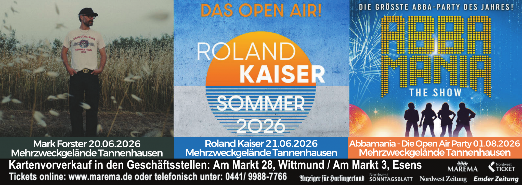 Die MAREMA GmbH wurde 1998 in Ostfriesland gegründet und hat sich zum größten Konzertveranstalter im Weser-Ems-Gebiet entwickelt. Mit über 100 Veranstaltungen im Jahr verfügt das Unternehmen über professionelles Know‑How, ausgeprägte Strukturen und einen riesigen Erfahrungsschatz.