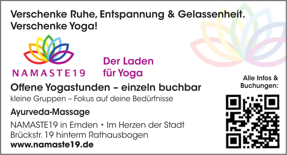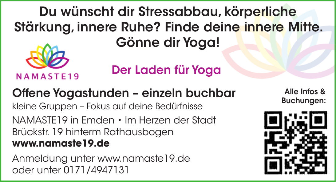 Namasté19 bietet Yoga in Emden, Ostfriesland, Deutschland.