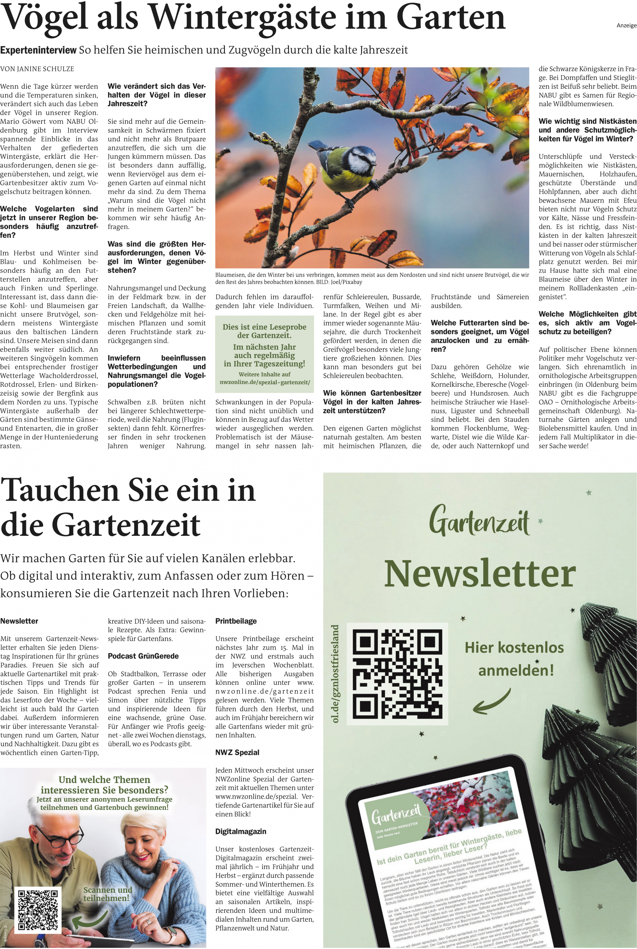 Wenn die Tage kürzer werden und die Temperaturen sinken, verändert sich auch das Leben der Vögel in unserer Region. Mario Göwert vom NABU Oldenburg gibt im Interview spannende Einblicke in das Verhalten der gefiederten Wintergäste, erklärt die Herausforderungen, denen sie gegenüberstehen, und zeigt, wie Gartenbesitzer aktiv zum Vogelschutz beitragen können.