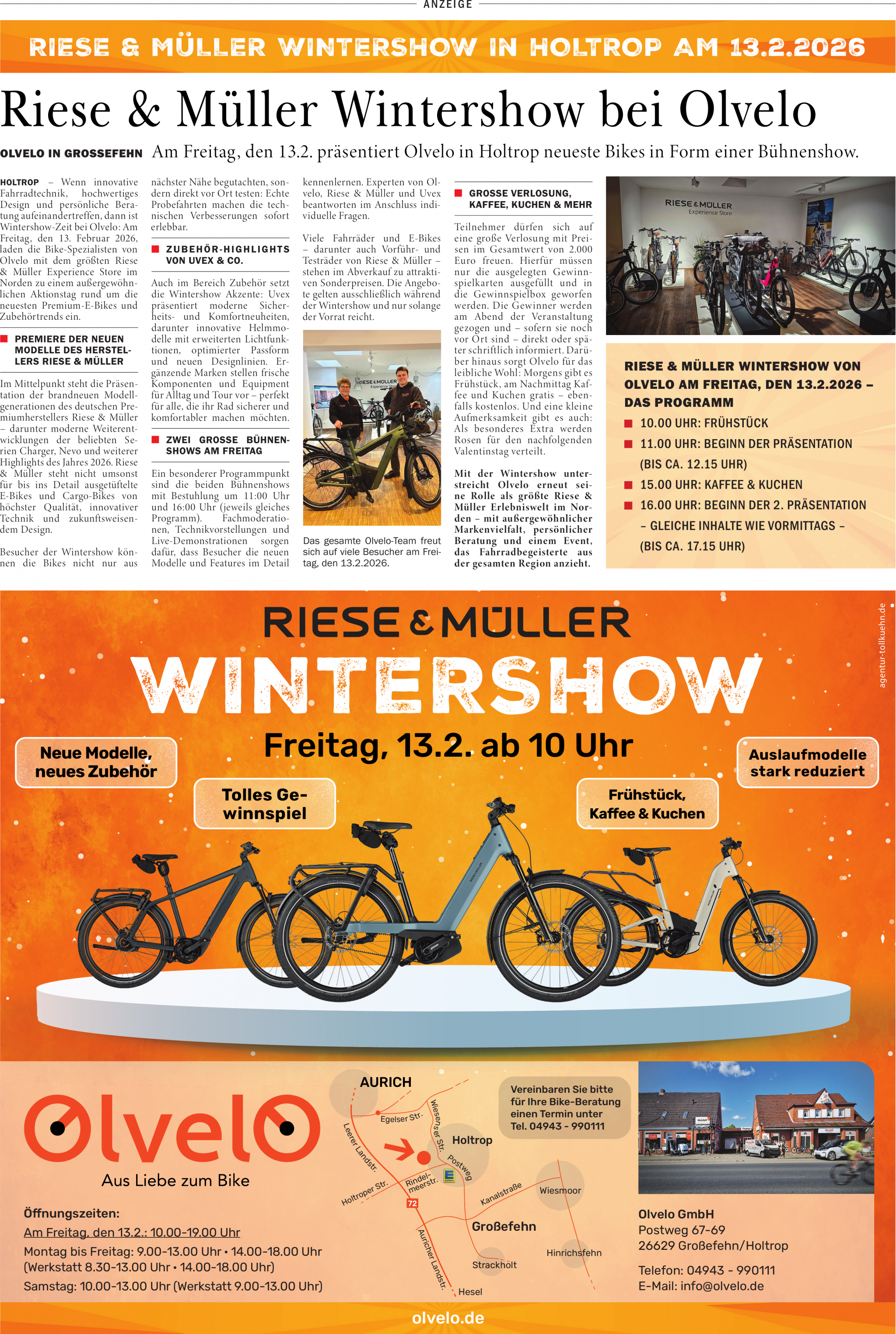Olvelo ist von Montag bis Freitag von 09:00 bis 13:00 Uhr und von 14:00 bis 18:00 Uhr sowie samstags von 10:00 bis 13:00 Uhr geöffnet.