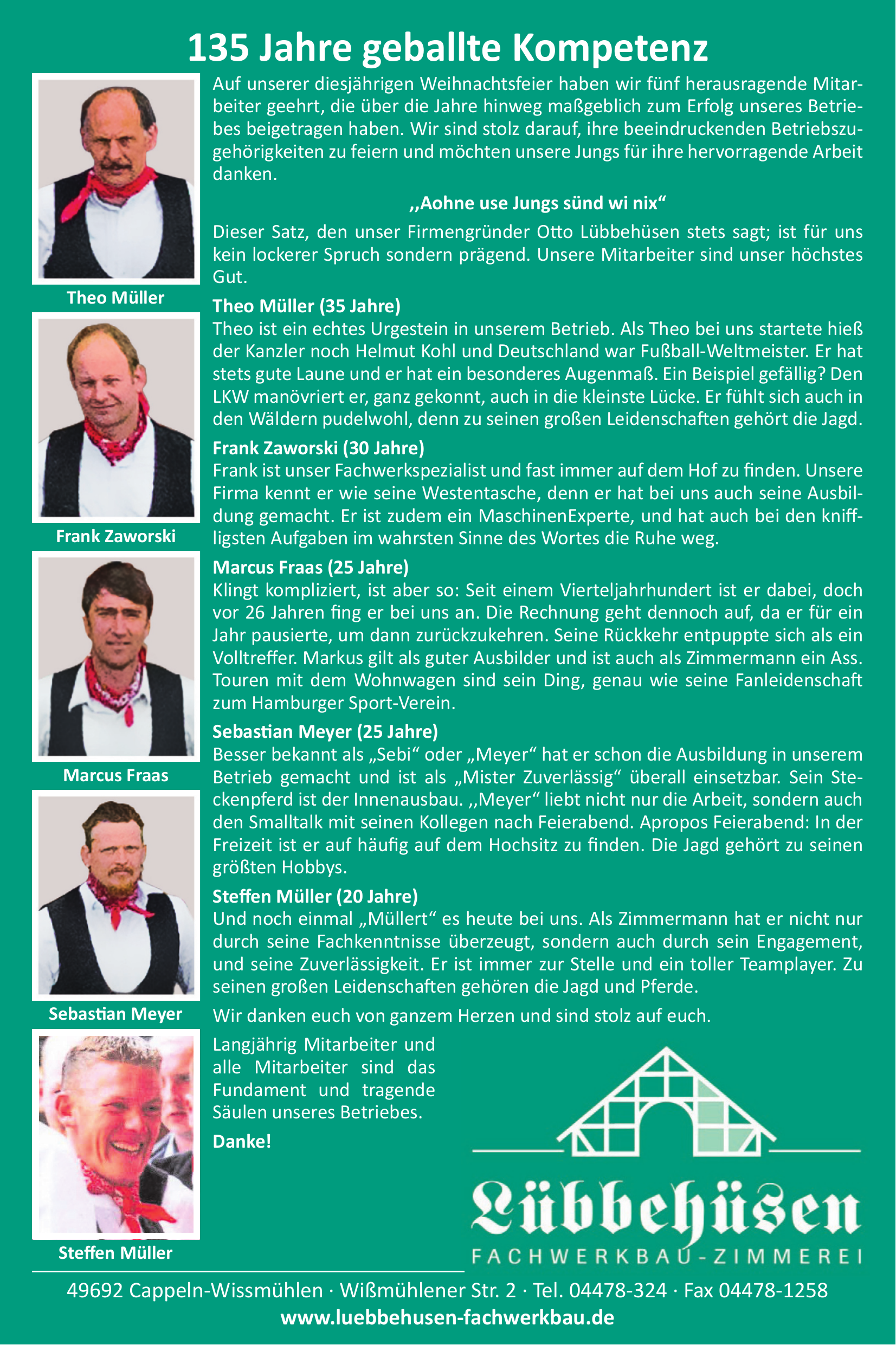 Dieser Satz, den unser Firmengründer Otto Lübbehausen stets sagt; ist für uns kein lockerer Spruch sondern prägend. Unsere Mitarbeiter sind unser höchstes Gut.