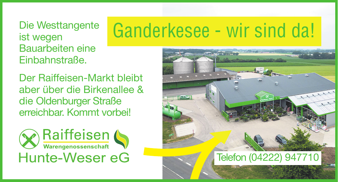 Im Herzen des Gebiets zwischen Hunte und Weser unterstützt der Raiffeisen-Markt Ganderkesee als Teil des RWG Hunte-Weser Netzwerks Landwirte mit einem umfassenden Angebot. Der Standort zählt zu den zehn wichtigen Anlaufstellen der Genossenschaft und bietet maßgeschneiderte Produkte und Dienstleistungen für die Anforderungen moderner Agrarbetriebe.