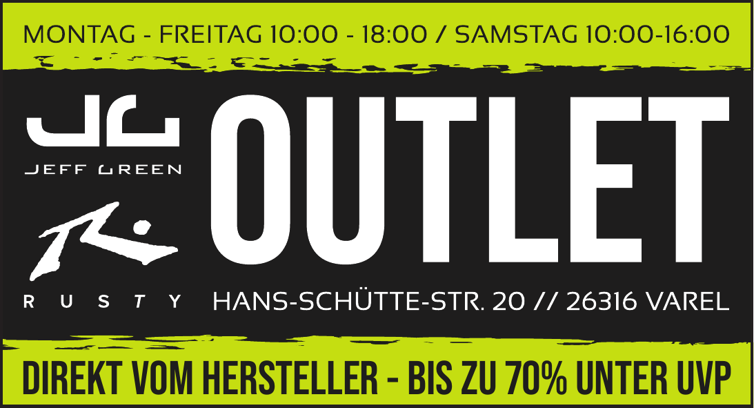 RUSTY Outlet wird als weltweit verfügbarer Online-Shop beschrieben; der Betrieb betont Europa als Heimatregion, in der Surfkleidung getragen wird und Surfkultur besteht.