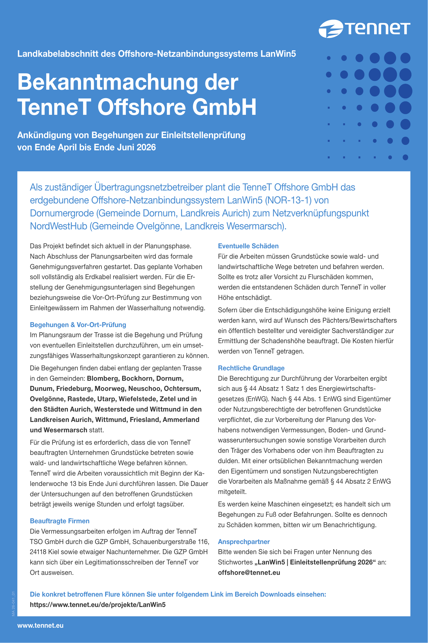 TenneT Offshore GmbH ist Teil von TenneT, einem führenden europäischen Netzbetreiber, der eine sichere und zuverlässige Stromversorgung rund um die Uhr anstrebt. Laut der Website zählt dazu ein Netz mit über 26.000 km Hochspannungsverbindungen und eine Verfügbarkeit des Netzes von 99,99977 %. Das Unternehmen arbeitet daran, die Energieversorgung zuverlässig zu gestalten und Berichte wie das Integrated Annual Report 2025 zu veröffentlichen.