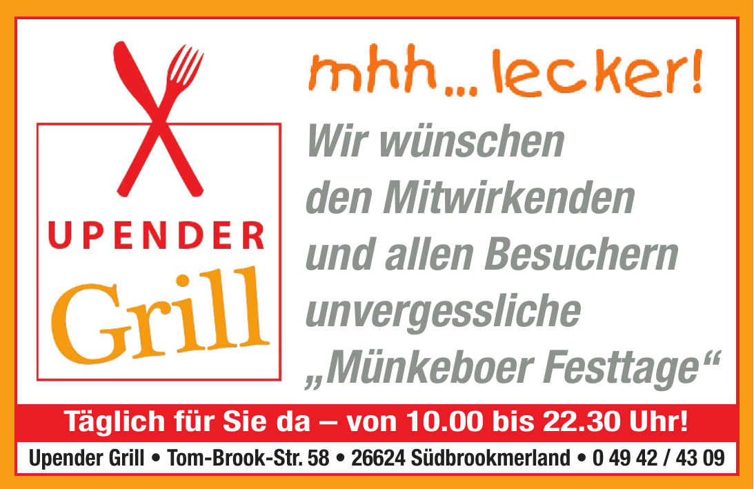 Sie können bei Upender Grill in Südbrookmerland Essen vor Ort im Restaurant genießen oder bequem online bestellen. Die Speisekarte ist auf der Webseite verfügbar, und die Bestellung kann direkt über den Link auf der Seite erfolgen.