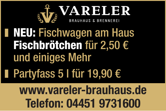 Das Vareler Brauhaus veranstaltet verschiedene Events wie Landjugendfeten, Weihnachts- und Silvesterpartys, Karneval und Grünkohlpartys, bei denen Tickets und Details auf der Website erhältlich sind.