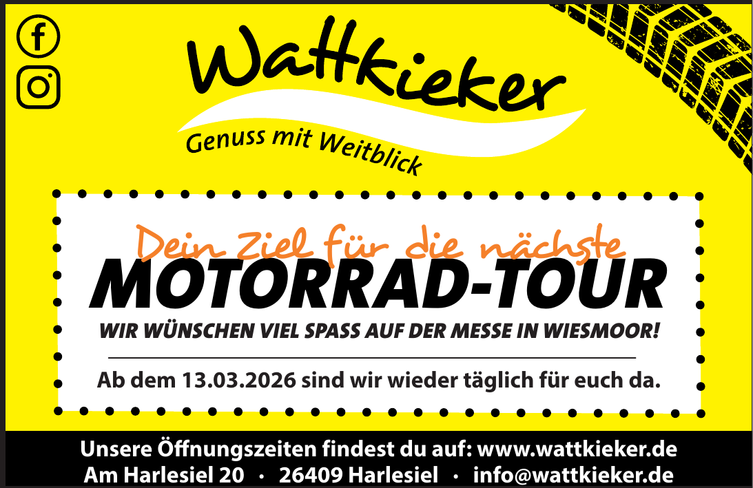 Das Wattkieker liegt am Harlesiel 20, 26409 Harlesiel, direkt hinter dem Deich am Fuße des Nationalparks Wattenmeer.